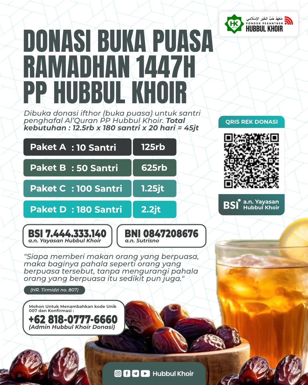 Dibuka donasi ifthor (buka puasa) untuk santri penghafal al...